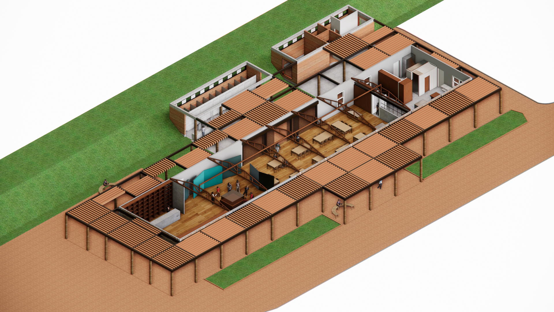 Os trabalhos de arquitetura são desenvolvidos visando a implementação do Plano Diretor da Fazenda, bem como a solução de problemas identificados no Diagnóstico de Usos e Circulação, dando maior qualidade espacial ao conjunto enquanto equipamento cultural. O desenvolvimento de projetos arquitetônicos e complementares para adequação de uso dos espaços e edificações incluem projetos de prevenção e combate a incêndio e acessibilidade, além do gerenciamento das obras.