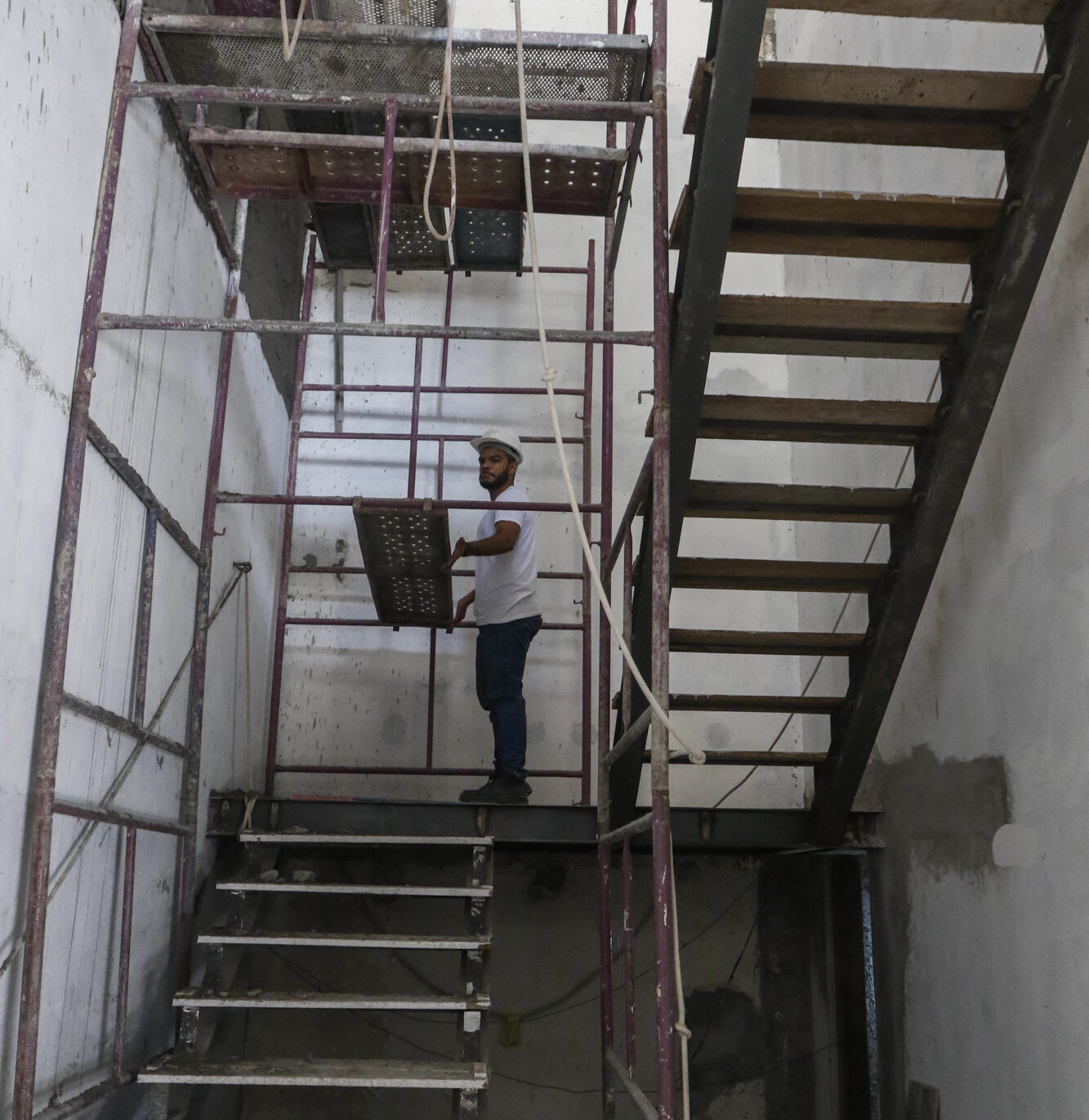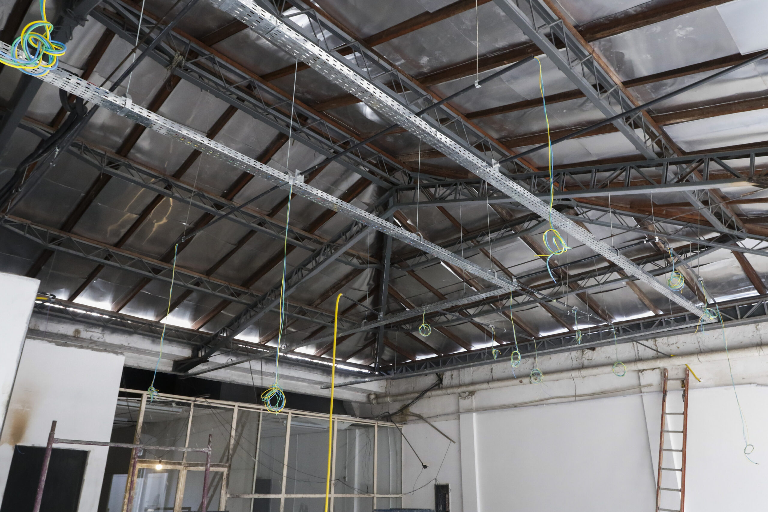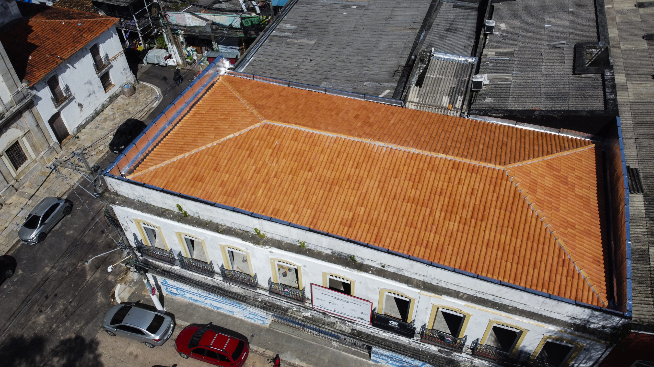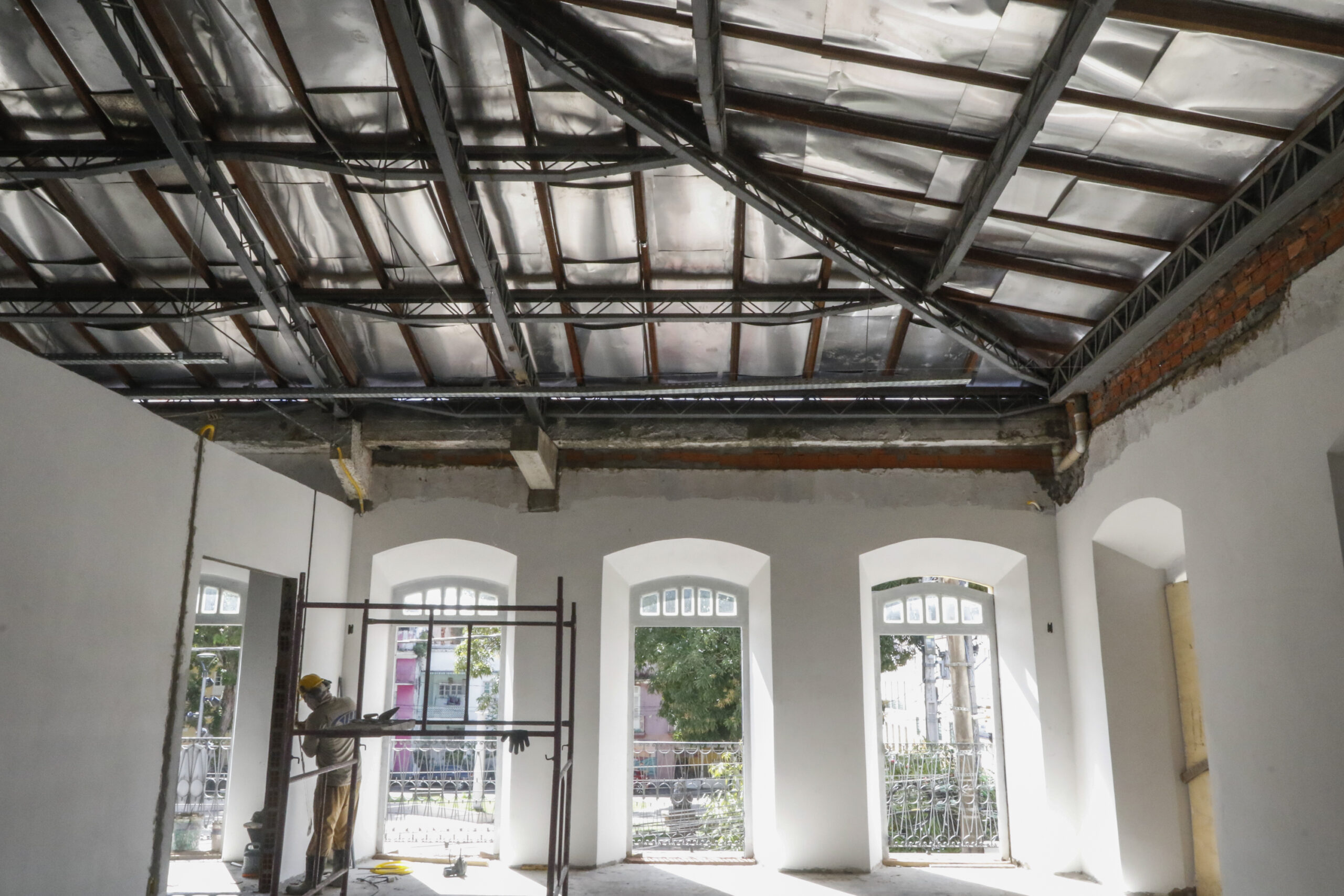 Nos primeiros meses de trabalho foi priorizada a reforma da cobertura, com a instalação de subcobertura com chapas de alumínio que garantirão a estanqueidade da edificação. Foram finalizadas também as estruturas da escada e do elevador, além da parte elétrica, hidráulica e restauração de esquadrias.